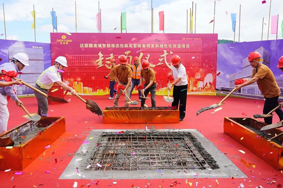 礼花绽放映长空,吉时同庆启新章!2025年7月1日上午,太阳成集团tyc138建设工地内彩旗飘扬、热闹非凡,“高端智能液态包装成套装备研发和绿色化改造项目”主体结构封顶仪式盛大举行,宣告项目建设取得阶段性重大突破。