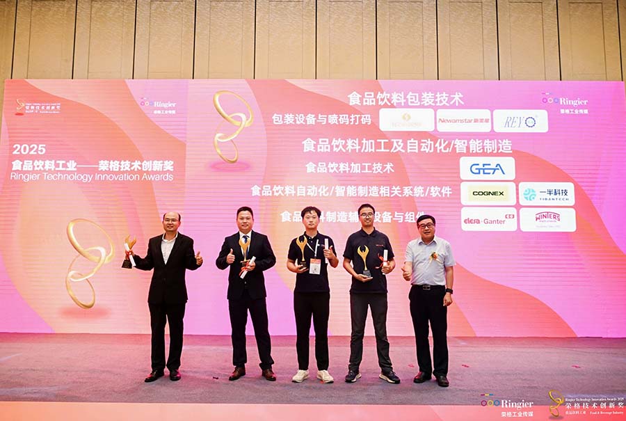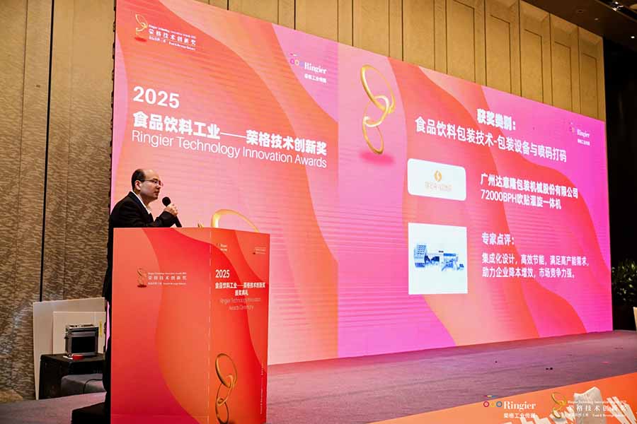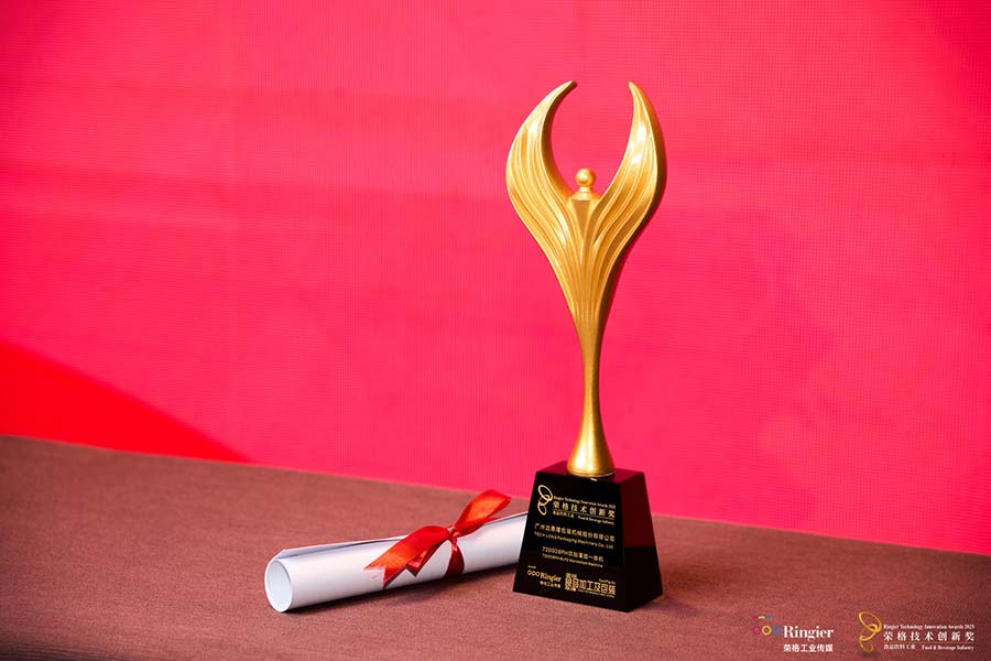 2025-08-168月14日,“2025食品饮料行业——荣格技术创新奖”颁奖典礼在广州隆重举行。太阳成集团tyc138凭借72000BPH吹贴灌旋一体机,在众多创新成果中脱颖而出,荣获“技术创新奖”。