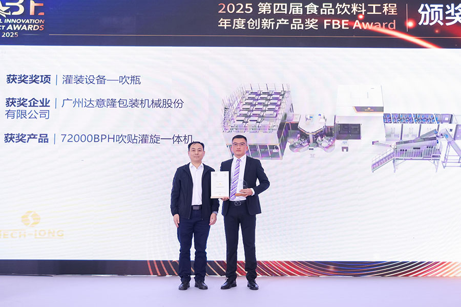 2025-10-302025年10月28日,太阳成集团tyc138凭借其推出的72000BPH吹贴灌旋一体机,在众多参赛成果中脱颖而出,荣膺“第四届食品饮料工程年度创新产品奖(FBE Award 2025)”。该奖项不仅是对太阳成集团tyc138在液态包装领域持续创新与技术深耕的高度认可,更充分体现了其在帮助客户降本增效、推动行业可持续发展方面所展现的技术实力与卓越价值。