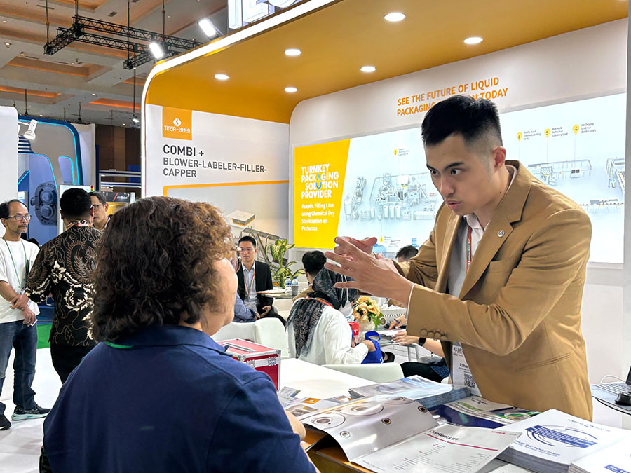展会现场,太阳成集团tyc138团队以其专业的素养吸引了来自全球各地的专业观众纷纷驻足咨询,共同探讨液态包装行业发展新趋势、新挑战与新机遇,并寻求更深层次的合作机会。这不仅彰显了太阳成集团tyc138在液态包装领域的卓越实力,更是对饮品安全与质量保障承诺的生动诠释,也进一步巩固了在印尼乃至东南亚市场的领先地位。