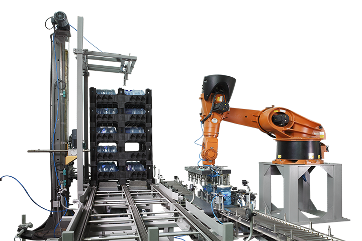 大桶水码垛机中夹瓶提升部件与吸板升降部分是由电机驱动。